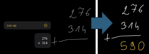FIGUUR 1 met de iPad notitie-app krijg je tijdens het noteren meteen de suggestie om een cijferoefening uit te rekenen.